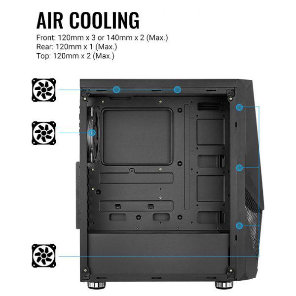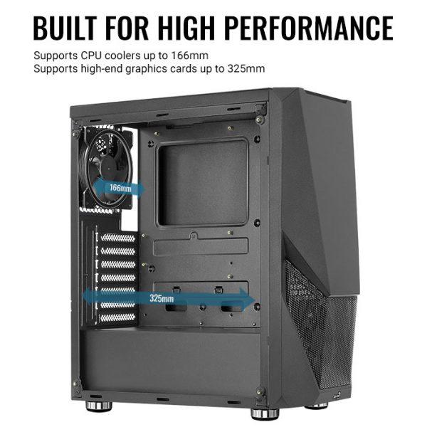 Carcasa Aerocool Zauron fRGB neagra ZAURON-SATURN-FRGB-G-BK-V1SPCC ABS Steel ATX Mid Tower, fara sursa (tip ATX, montata jos), interior vopsit negru, 2×3.5″ (1 x 3.5″ si1 x 3.5″/2.5″ intern), 4×2.5″ (2 x 2.5″ si 1 x 2.5″/3.5″ intern), fata –1x 120mm LED fRGB fans (inclus) / 2x 120mm / 2x 140mm fans (optional),spate – 1x 120mm fan (optional), tavan – 2x 120mm fans (optional),design premium cu panou lateral din sticla securizata, 2x USB 3.0, 1xUSB 2.0, HD Audio, ATX / microATX / Mini-ITX, sloturi expansiune: x7,inaltime maxima cooler procesor: 166mm, lungime maxima placa video: panala 325mm fara radiator montat, suport radiatoare water cooling: fata –1x 120/240mm, spate – 1x 120mm, dimensiuni (HxWxD): 442×217.7x409mm