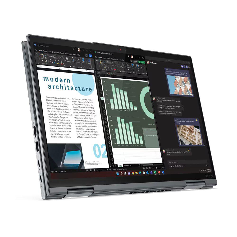 Laptop Lenovo ThinkPad X1 Yoga Gen 8, 14″ WUXGA (1920×1200) IPS 400nits Anti-glare, 100% sRGB, Low Power, Touch, Intel® Core™ i7-1355U, 10C (2P + 8E) / 12T, P-core 1.7 / 5.0GHz, E-core 1.2 / 3.7GHz, 12MB, Video Integrated Intel® Iris® Xe Graphics, RAM 32GB Soldered LPDDR5-6000, SSD 1TB SSD M.2 2280 PCIe® 4.0×4 Performance NVMe® Opal 2.0, Optical: no ODD, No card reader, Speakers: Stereo speakers, 2W x2 woofers and 0.8W x2 tweeters, Dolby® Atmos®, Camera: FHD 1080p + IR Hybrid with Privacy Shutter, LAN: none, WLAN Intel® Wi-Fi® 6E AX211, 11ax 2×2, Bluetooth 5.1, WWAN (3G/4G): WWAN Upgradable to 4G or 5G, Fingerprint: Touch Style, Match-on-Chip, Integrated in Power Button, I/O Ports: 1x HDMI® 2.1, up to 4K/60Hz, 1x Headphone / microphone combo jack (3.5mm), 1x USB 3.2 Gen 1, 1x USB 3.2 Gen 1 (Always On), 2x Thunderbolt™ 4 / USB4® 40Gbps (support data transfer, Power Delivery 3.0 and DisplayPort™ 1.4a), 65W USB-C® Slim (3-pin), Battery Integrated 57Wh, Keyboard: Backlit, English (EU), Color: Storm Grey, Weight Starting at 1.38 kg, Dimensions 314.4 x 222.3 x 15.53 mm, Warranty: 3-year, Courier or Carry- in, 3Y Premier Support WHB (CPN), OS: Windows® 11 Pro, Romanian / English
