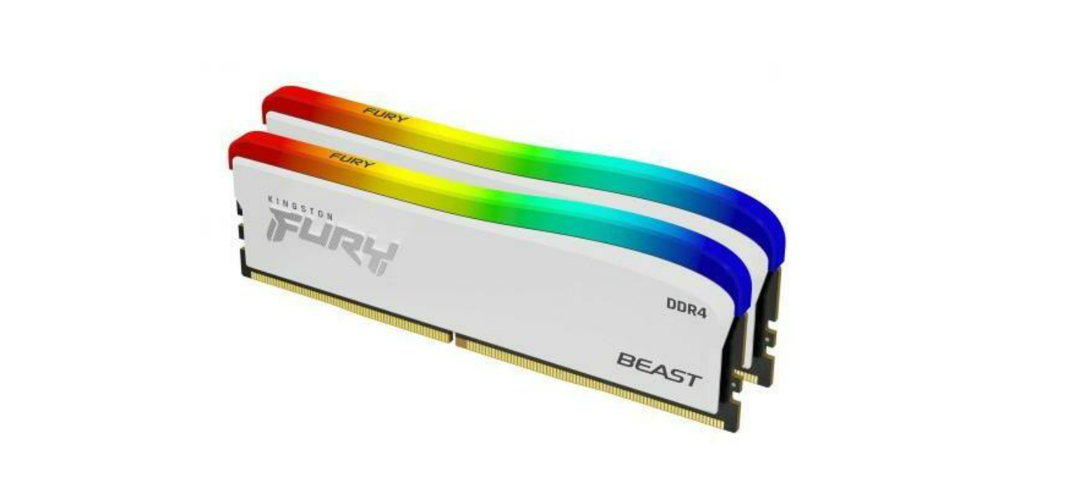 Memorie RAM Kingston Fury Beast White, DIMM, DDR4, 32GB, 3200MHz, CL16, 1.35V,Kit of 2, RGB SE